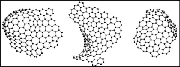 活性炭的具體原子構(gòu)型尚不清楚,盡管它在水和空氣凈化方面具有重要的商業(yè)意義。通過熱解法制備的碳的構(gòu)型。她指出,這些碳可以分為兩個(gè)不同的組,即石墨化和非石墨化;钚蕴垦苌龅奶际欠鞘,這意味著即使在非常高的溫度(≥3000℃)下,它也可以轉(zhuǎn)變?yōu)榻Y(jié)晶石墨。中子衍射研究表明,非石墨化碳具有類似于富勒烯的骨架,如圖1所示。這種配置將闡明碳的微孔結(jié)構(gòu)及其其他特性。從x射線和中子衍射研究中獲得的衍射數(shù)據(jù)已根據(jù)由非六角環(huán)組成的結(jié)構(gòu)進(jìn)行了闡明,但無法提供任何明確的證據(jù)表明原子以五角環(huán)或六角環(huán)的形式鍵合。