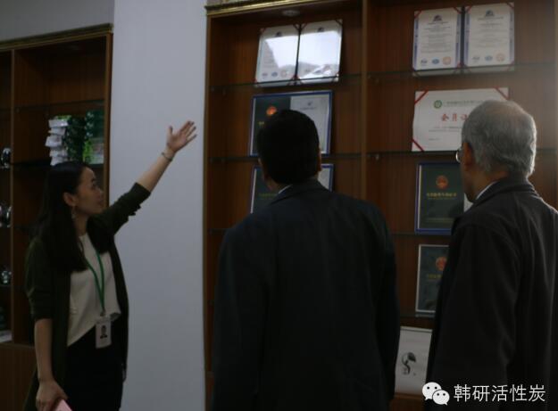 我司外貿(mào)總監(jiān)Jane 帶領(lǐng)來訪的客戶們參觀了我司的證書展示區(qū)(各種認(rèn)證及專利)、產(chǎn)品展示區(qū)、研發(fā)實驗室、蜂窩活性炭生產(chǎn)車間、椰殼活性炭生產(chǎn)車間等等,讓他們更加真真切切地感受到韓研強大的技術(shù)研發(fā)及生產(chǎn)能力。