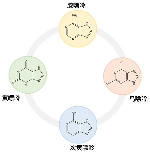 圖2:嘌呤化合物的世界及其化學(xué)結(jié)構(gòu)。