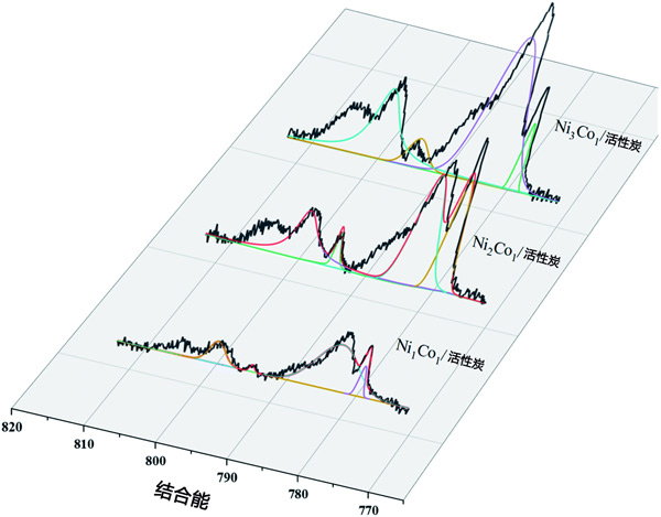 采用X射線光電子能譜(XPS)對(duì)多種活性炭催化劑進(jìn)行表面分析,并對(duì)鎳和鈷進(jìn)行表征氧化態(tài)。Ni02p光譜表現(xiàn)出兩個(gè)貢獻(xiàn),2p1/2和2p3/2(由自旋軌道分裂產(chǎn)生),分別位于870eV和852.4eV(圖1a-d),可以分配給存在金屬鎳。O1s峰和Ni2+的存在,這可以通過(guò)在873.8eV(Ni2+2p1/2)和852.8eV(Ni2+2p3/2)的主峰上觀察到的肩峰來(lái)證明,表明樣品在暴露于大氣層。類(lèi)似地,催化劑中Co2p的XPS光譜(圖2)顯示出四個(gè)主峰,結(jié)合能分別為778.45eV、782.7eV、793.66eV和798eV,對(duì)應(yīng)于Co02p3/2、Co2+2p3/2,Co02p1/2和Co2+2p1/2。此外,根據(jù)載鎳活性炭,已觀察到載鎳鈷活性炭的結(jié)合能偏移隨著鈷負(fù)載量的增加而增加,最大偏移約為0.3eV。在比較這些樣品時(shí),從載鎳活性炭到載鎳鈷活性炭向更高結(jié)合能的轉(zhuǎn)變提供了鎳、鈷和載體物質(zhì)之間相互作用的證據(jù)。