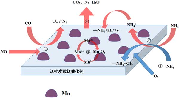 基于以上結(jié)果,我們提出活性炭載錳系列催化劑耦合低溫脫硝反應(yīng)過(guò)程。