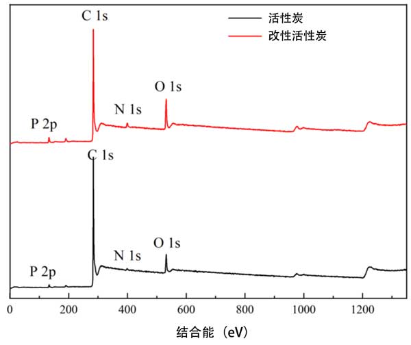 圖3:Na2EDTA改性前后活性炭的XPS分析。