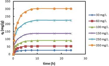2.在不同初始濃度下,接觸時(shí)間對(duì)氯乙醇在活性炭上吸附的影響。