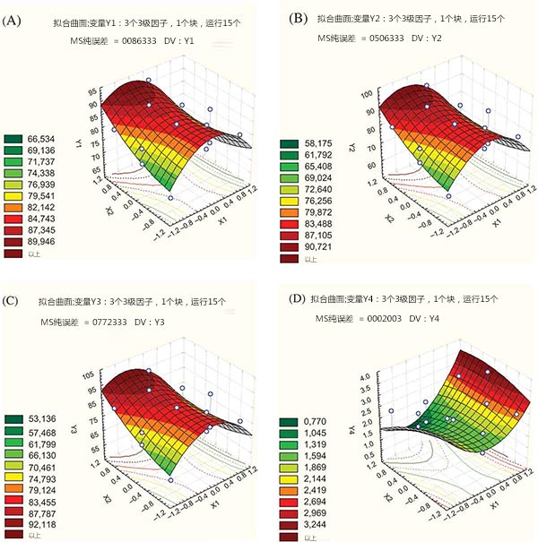 圖2:活性炭與甘蔗廢水的比率(x1)和pH值(X2),在固定處理時(shí)間為2小時(shí)。
