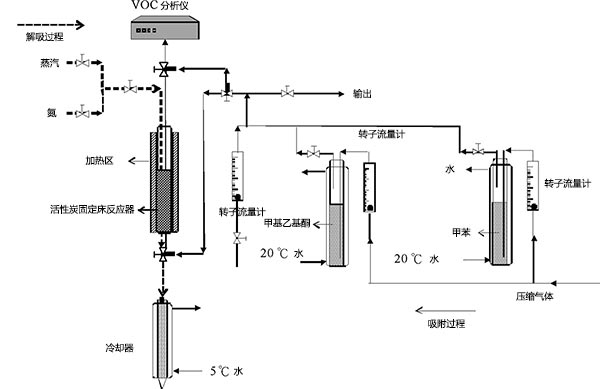 圖1.活性炭連續(xù)交流吸附解吸過程的實(shí)驗(yàn)裝置。