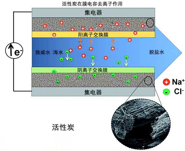 對(duì)于微咸水去鹽離子使用電容去離子是常用方法,然而,電容去離子的工業(yè)應(yīng)用受到其電極材料的低鹽吸附容量和低操作充電效率的阻礙。為了緩解這些問題,將離子交換膜以稱為膜電容去離子的形式放置在電極前面。為了補(bǔ)充膜電容去離子的優(yōu)點(diǎn),已經(jīng)進(jìn)行了大量研究以開發(fā)具有高表面積,更好的孔徑分布和優(yōu)異的導(dǎo)電性的電極材料。其中,活性炭,碳?xì)饽z,石墨烯復(fù)合物,碳納米管,納米纖維,中孔碳等已被研究作為有前途的電極材料。遺憾的是,大多數(shù)這些材料是使用石油衍生的化學(xué)品合成的,這些化學(xué)品是有限的且不可再生的,涉及繁瑣的合成工藝,因此增加了生產(chǎn)應(yīng)用的成本。因此,開發(fā)用于高性能低成本的方法,環(huán)保型活性炭電極材料是非常重要的。