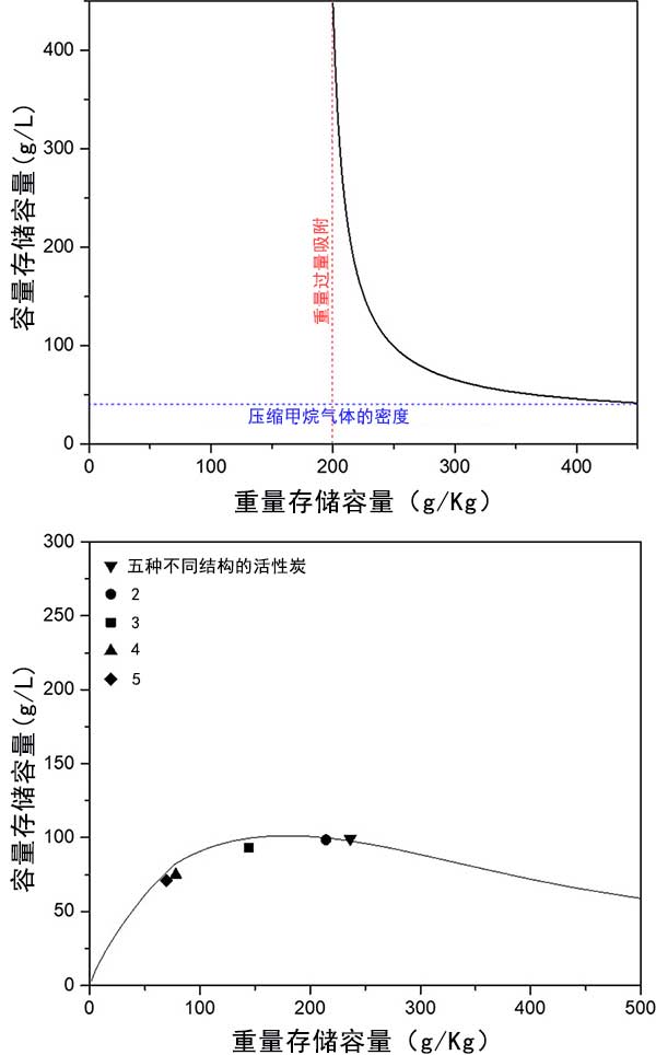 圖3:活性炭的重量和體積儲(chǔ)存容量之間的關(guān)系。