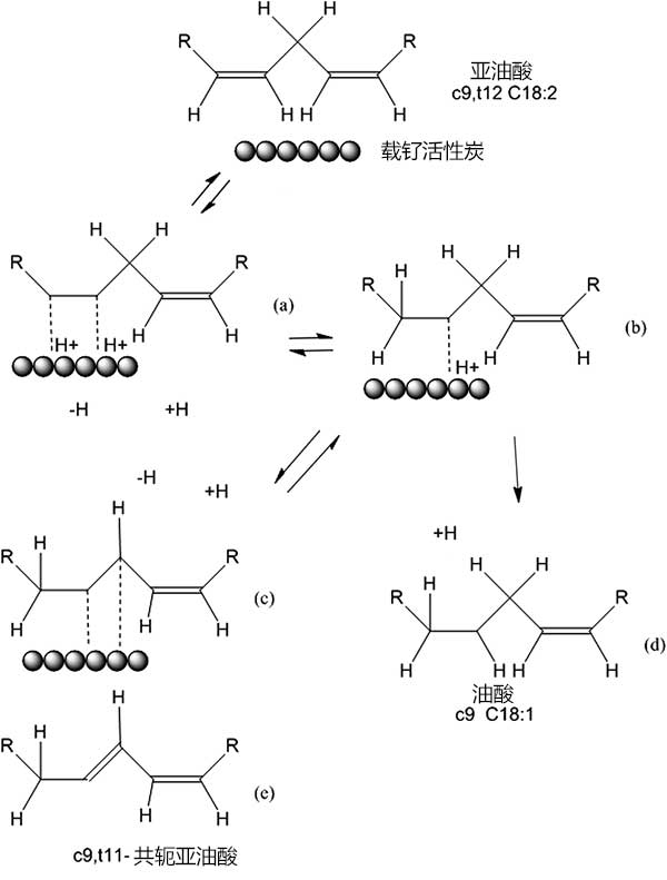 圖4:亞油酸異構(gòu)化和氫化的機理。