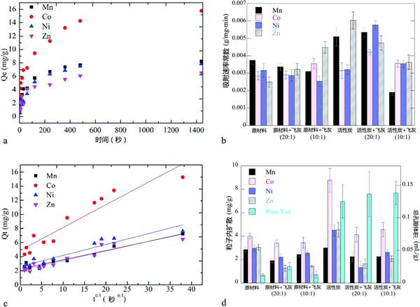 圖3:活性炭對(duì)重金屬的吸附動(dòng)力學(xué)。