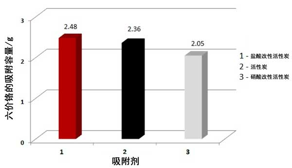 圖1.:活性炭的類型對(duì)六價(jià)鉻吸附容量的影響。