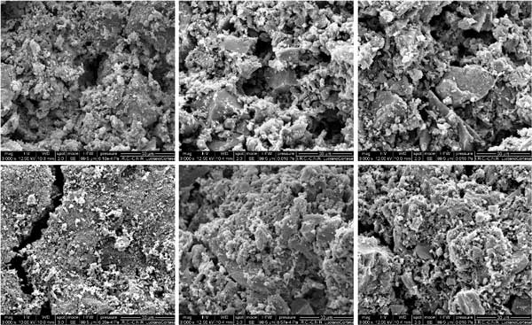 可以通過(guò)掃描電子顯微鏡,通過(guò)分析每個(gè)測(cè)試開(kāi)始和結(jié)束時(shí)材料的圖像來(lái)進(jìn)一步研究此方面。注意孔徑。測(cè)試后(圖4的底部)不再存在新鮮材料大量孔隙的大部分(圖4的頂部)。在測(cè)試結(jié)束時(shí),萘碳化產(chǎn)生的碳沉積物主要以小晶粒的形式存在于活性炭表面,通常集中在表面的特定區(qū)域周圍,可能對(duì)應(yīng)于活性部位。在煤或椰子殼上的活性炭上已經(jīng)觀察到類似的碳粒和細(xì)絲,并且在這些情況下,它們的形成與鐵和堿物種的催化活性有關(guān)。在活性炭球團(tuán)的SEM圖像中,也可以區(qū)分深裂縫,這可能是熱應(yīng)力的結(jié)果。