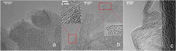 圖1:(a)石墨活性炭,(b)活性炭納米管,(c)鈦活性炭(狹縫狀孔)。