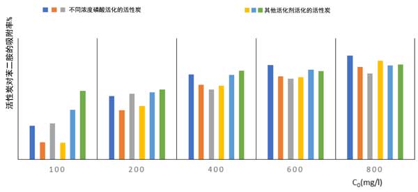 活性炭的制備在室溫下干燥之前,用蒸餾水洗滌,隨后進(jìn)行粉碎研磨處理并使用電篩篩分,以獲得63μm的均勻粉末粒度。所得粉末在使用電爐煅燒前用磷酸進(jìn)行化學(xué)預(yù)處理。根據(jù)特定比例添加磷酸來進(jìn)行活化,并在110℃的爐中干燥48小時。隨后將干燥混合物引入坩堝陶瓷中,在450℃下在爐中煅燒,使其孔隙逐漸打開。用蒸餾水徹底清洗活性炭表面的活性殘留物,該步驟用來控制活性炭的pH。這樣得到的活性炭在110℃的烘箱中再次干燥48小時獲得成品。