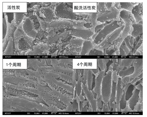 通過酸洗的活性炭和活性炭在顯示圖2中,SEM成像還透露,酸洗除去的雜質,從而產生的孔結構具有一個看似光滑的表面。與原始活性炭相比,酸洗活性炭的比表面積和總孔體積略大。這可能是在酸洗過程中去除了其他化學物質(例如氧氣)的影響。然而,酸洗似乎對活性炭的孔徑幾乎沒有影響。原始活性炭和新鮮活性炭的平均孔徑表明,絕大多數(shù)孔都屬于微孔范圍。