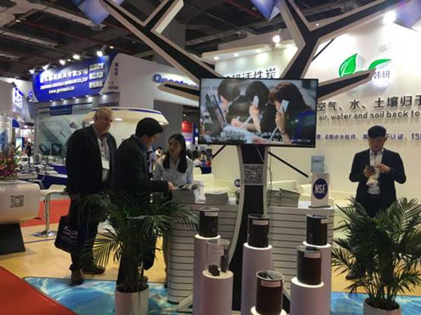 在為期三天的展會(huì)中,來(lái)自各個(gè)國(guó)家、各個(gè)行業(yè)的專(zhuān)家在韓研活性炭的展館交流探討活性炭相關(guān)技術(shù)問(wèn)題。